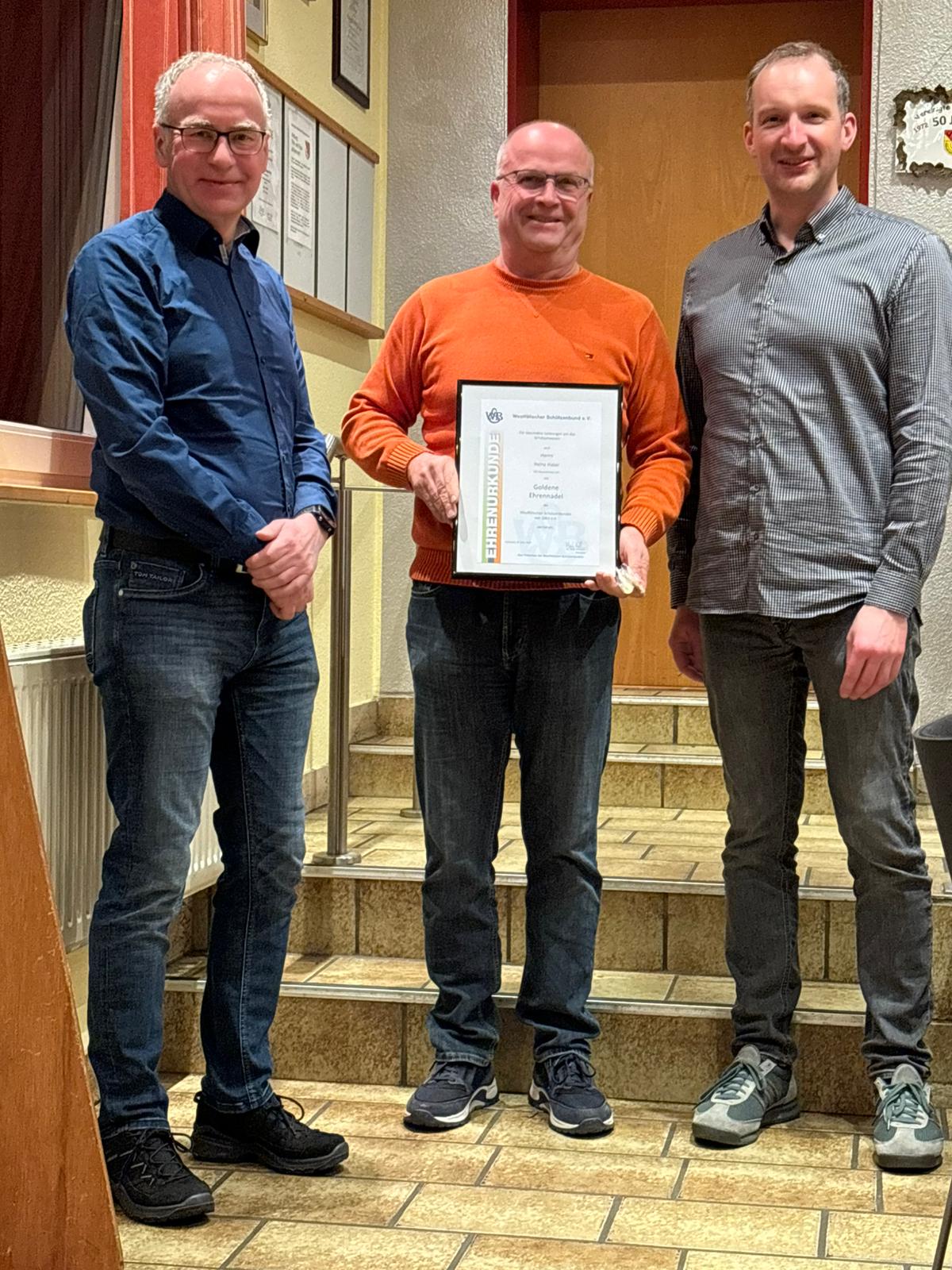 Ludwig Rietmann Ehrennadel vom WSB - v.l.n.r. Kreisvorsitzender Thorsten Schulz, Ludwig Rietmann, 2. Vors. Manuell Thormann