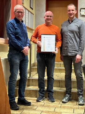 Manuel Thormann Ehrenschild des WSB - V.l.n.r. Kreisvorsitzender Thorsten Schulz, 2. Vorsitzender Manuel Thormann, Geschäftsführer Klaus Stegemann